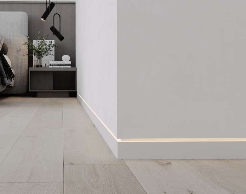 Освещение. Естественное и искусственное освещение влияет на восприятие цвета. Тёплый свет делает оттенки более мягкими и уютными, холодный — подчёркивает контрасты. Перед окончательным выбором оцените образцы плинтусов при том освещении, которое будет в комнате.